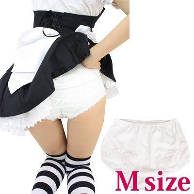 メイド系コスプレ衣装と相性抜群!純白のふりふりレースが可愛いアンダースコート。細めのレースをフロントとバックにたっぷり施した本格派。安心のフルバックタイプなので、見せパンとしてもバッチリ活躍してくれます。※水洗い可、塩素系漂白剤による漂白不可、アイロンは中温で当て布使用、ドライクリーニング可※こちらの商品は在庫の状況によりお届けまでに4日〜7日程度かかる場合がございます。