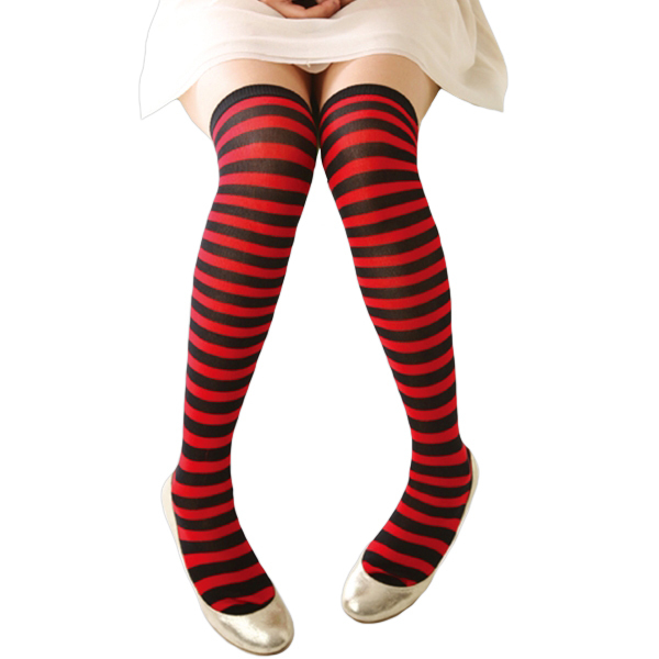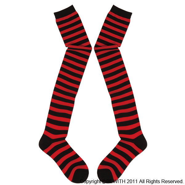 コスプレで大活躍間違いなし!赤×黒ボーダーのニーハイソックス。