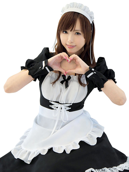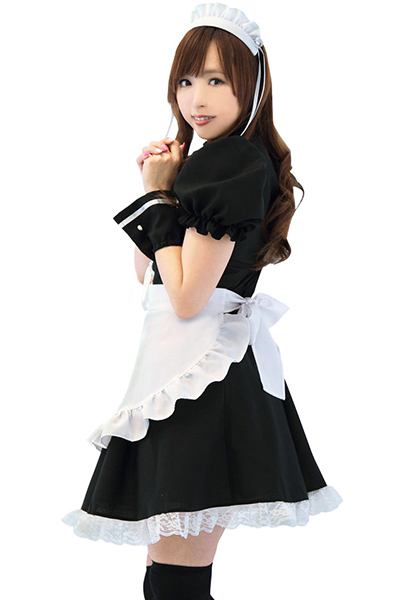 黒×白の王道カラー!充実セットのメイド服コスチューム。