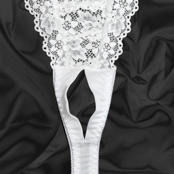 HOME > オープン ブラ・ショーツ(穴あき) > トリコット生地フラワーレース脇紐オープンTバック ホワイト