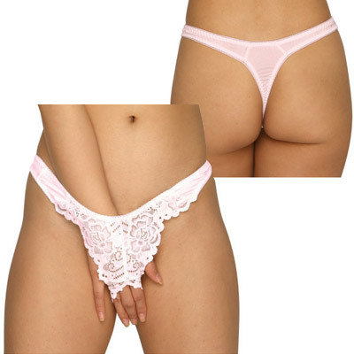 HOME > オープン ブラ・ショーツ(穴あき) > トリコット&レース生地オープンクロッチTバック ピンク