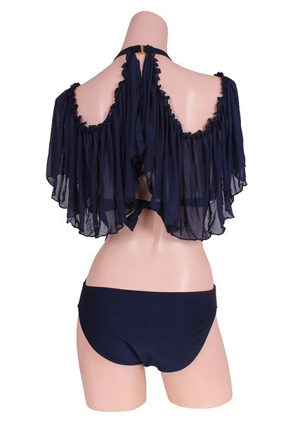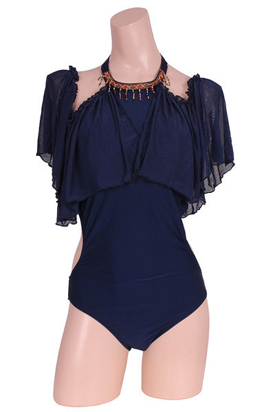 ネイビーをセクシーにさせた!洗練美を加速するメッシュ素材のオフショルダーのワンピーススイムウエアー。