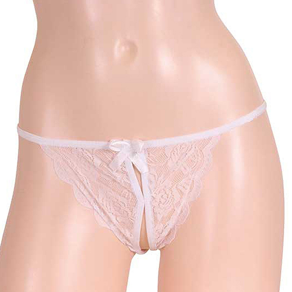 極薄の花柄レースが魅惑的なオープンTバック(白)♪大胆な穴あき仕様で貴女の身体をよりエロティックに演出します。