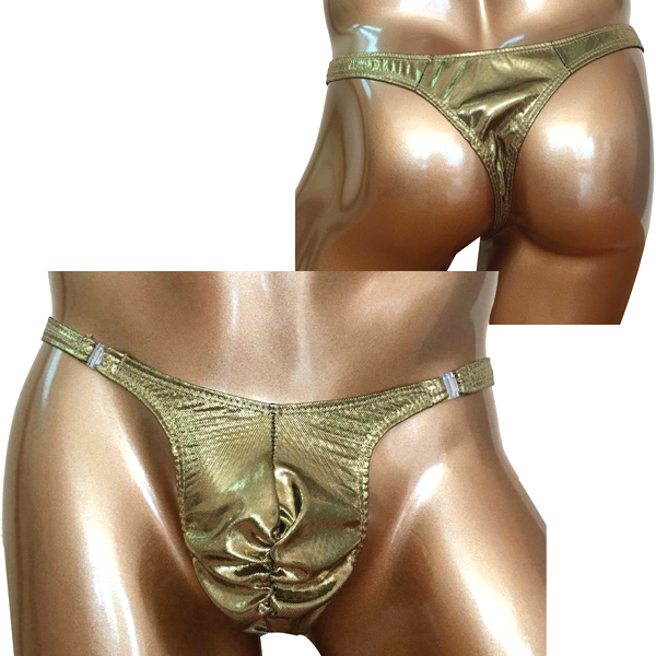 男の象徴を金に輝かせるゴージャスなメンズ用Tバック(ゴールド)。