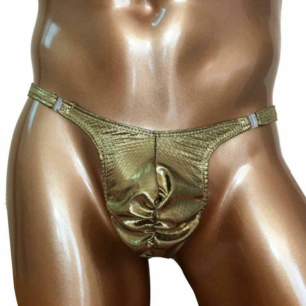 引き締まったお尻と男の象徴を強調する!ゴールドカラーが目を惹く男のためのセクシーTバック。