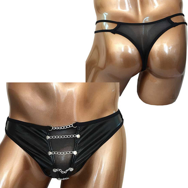 フロントにチェーンを装飾した格好いい男性用タンガ風Tバック。