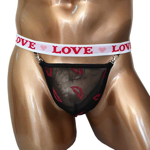太目の白ゴムにLOVEとハートマークがプリントされたポップで可愛い男性用GストTバック。