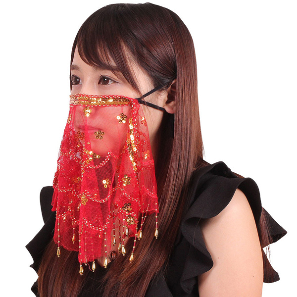 ベリーダンスやアラビアン衣装のコーデアイテムに、通気性の良いレース素材を使用したキラキラ煌めくナイトマスク。