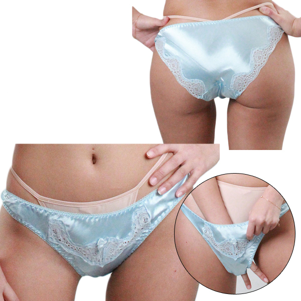 バックはサックスカラーのサテン地がヒップを優しく包み込みます。