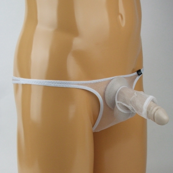 メンズ キラキラスケスケ生地ゾウさんイボイボリング付きTバック (ホワイト)