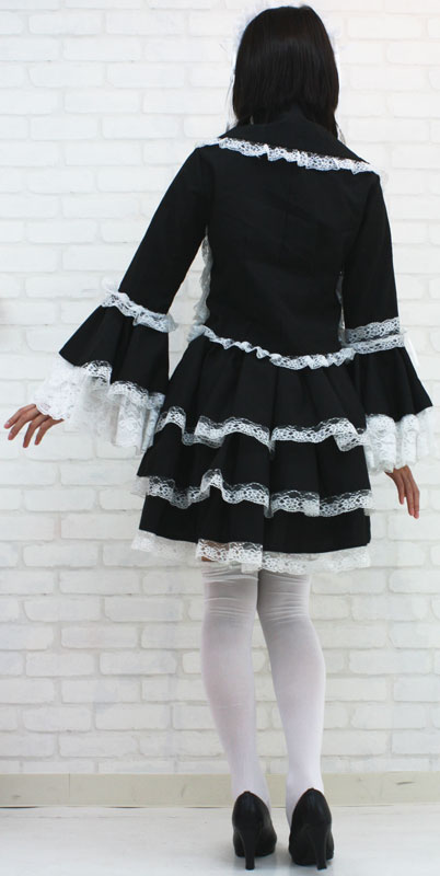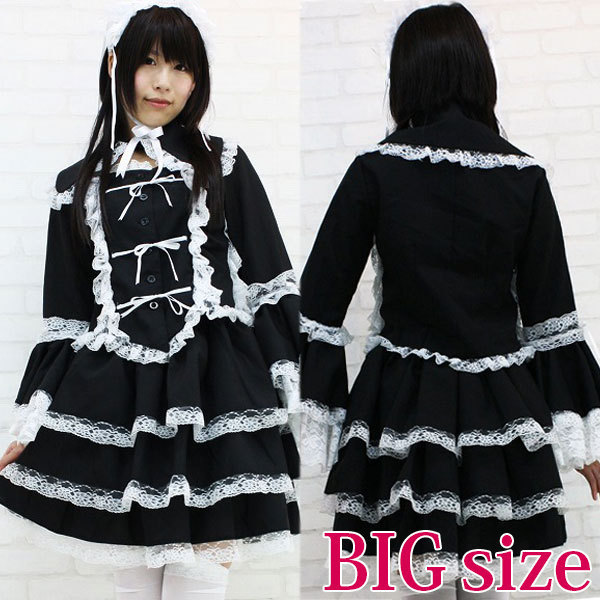 ■仕様:BIGサイズ:B85〜90cm・W90〜116cm 丈:上着53cm(袖65cm・肩幅39cm)・スカート48cm セット内容:ジャケット(前ボタン留め、姫袖)・別衿・ヘッドドレス(総レース仕様、バラのコサージュ付き)・スカート(ウェストゴム入り)