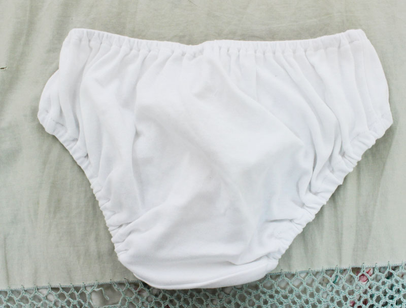 フロントにちょこんと付いた水色リボンがキュートな純白の綿ロリパン。