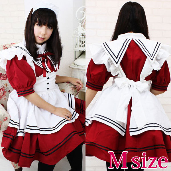■仕様:Mサイズ:B78〜86cm・W62〜94cm 丈:ワンピース78cm(肩幅35cm、袖丈26cm、袖口29cm)・エプロン68cm セット内容:ワンピース(ウエストゴム入り、後ろファスナー、前飾りボタン付き・襟付き)・エプロン(前飾りボタン付き)・カチューシャ