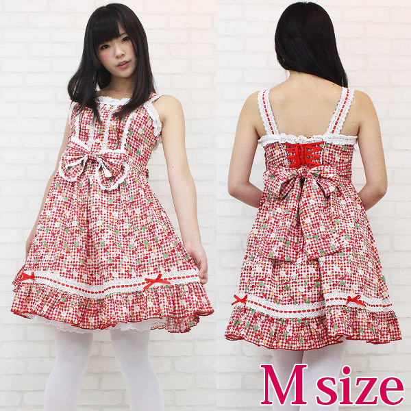 チェリーとベリーのギンガムチェックJSK M