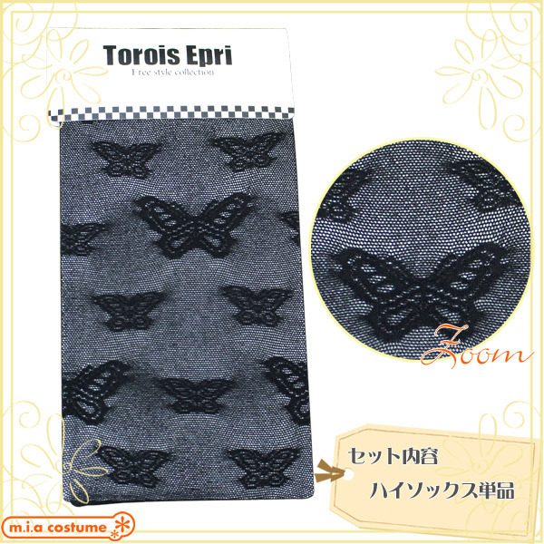 HOME > 小道具(ニーソックス・猫耳) > 蝶柄ハイソックス 黒 フリーサイズ