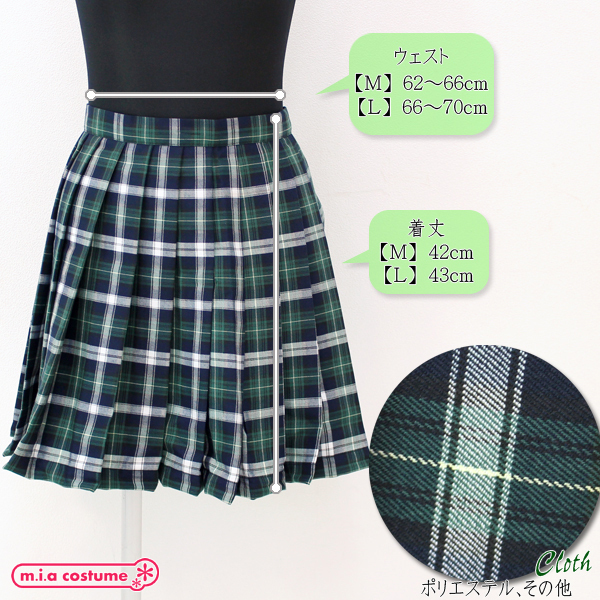 HOME > 小道具(ニーソックス・猫耳) > ポケット付きのチェック柄プリーツスカート単品 緑×白 Mサイズ
