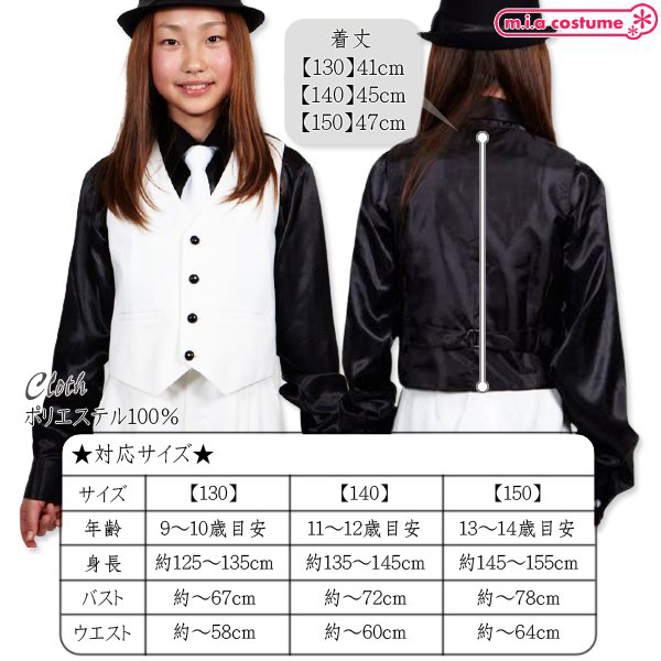 ■仕様:130サイズ 対応サイズ:身長125〜135cm・B〜67cm・W〜58cm 実寸:着丈41cm セット内容:ベスト単品(前ボタン) 素材:ポリエステル100%