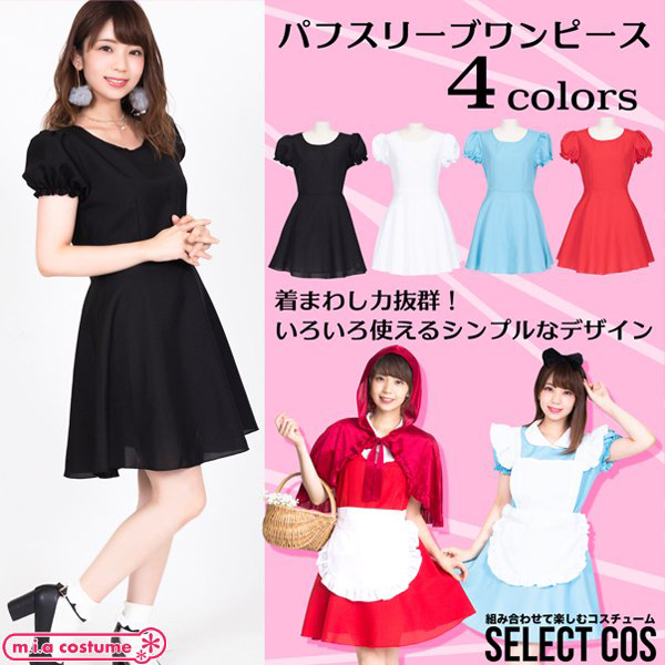 HOME > 小道具(ニーソックス・猫耳) > セレクトコス パフスリーブワンピース ブラック