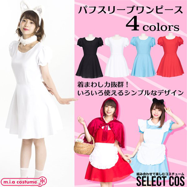 HOME > 小道具(ニーソックス・猫耳) > セレクトコス パフスリーブワンピース ホワイト